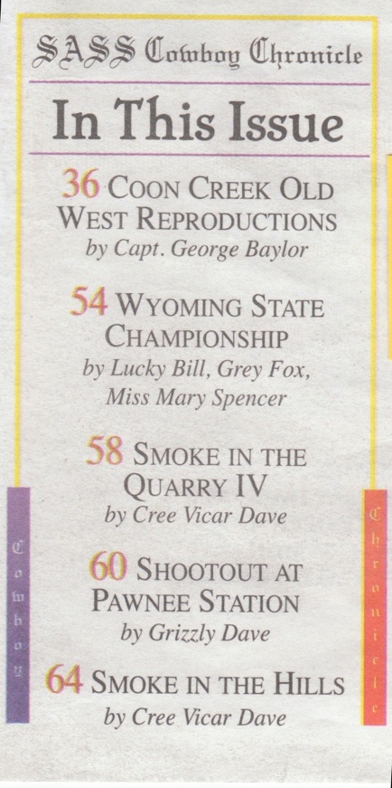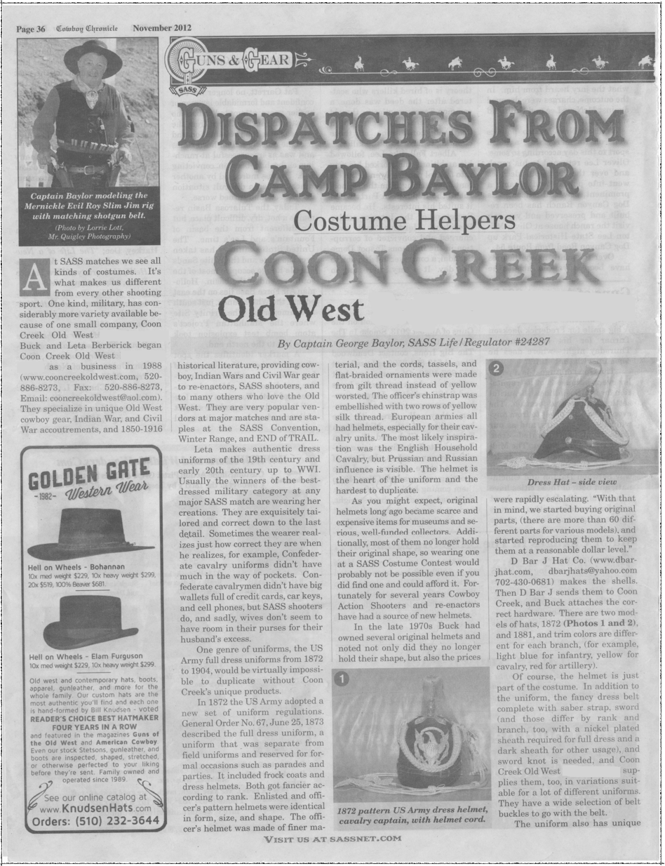 Coon Creek has been in business since 1988, providing Cowboy, Indian War & Civil War gear to re-enactors, SASS shooters, and to many others who love the OLD WEST.