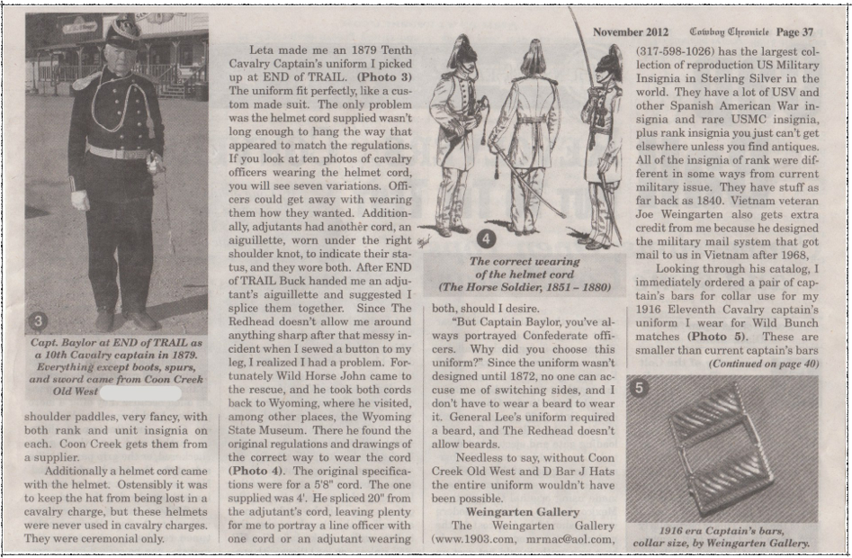 Specializing in unique OLD WEST Cowboy gear, Indian War, & Civil War accoutrements, and 1850-1916 historical literature.